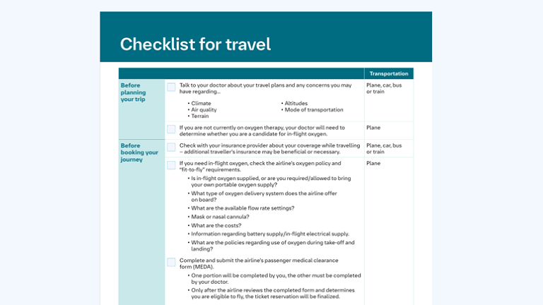 A checklist to help you prepare for travelling if you or your loved one has PF.